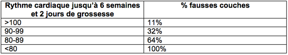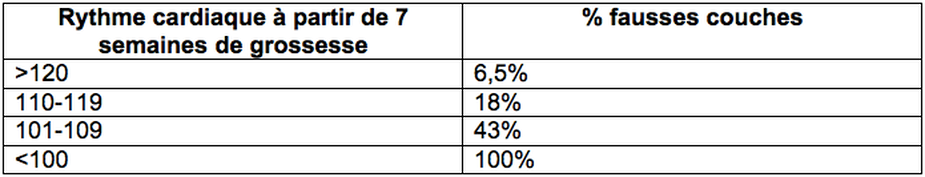 3 - Le risque de fausse couche dépend de la fréquence cardiaque foetale